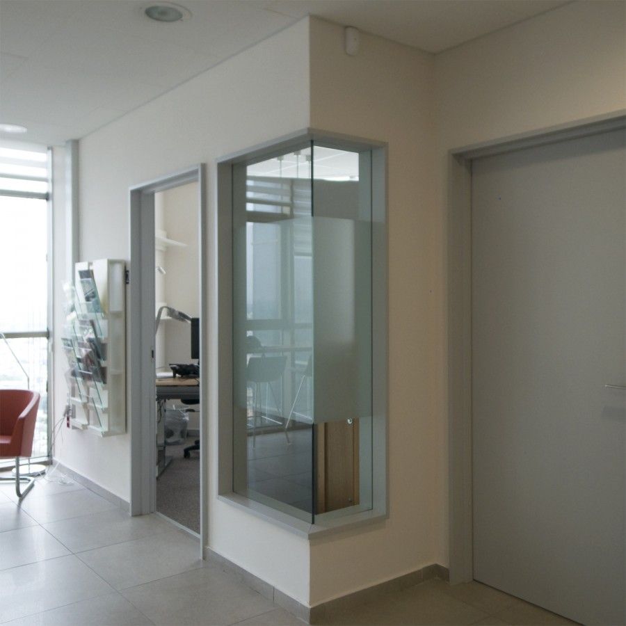 Då byggnadens planform är rund och kontoren delades in med radiella väggar blev korridoren mellan kontorsrummen och kärnan en utmaning. Lösningen blev att trappa bredden och låta korridoren vidga sig till en större bredd i mitten. Kontorsrummens hörn öppnades för med glaspartier över hörn, vilka sticker ut som lyktor mot korridoren och kärnan.