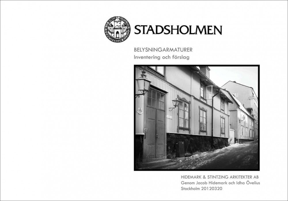 BeskrivningEtt mål i arbetet med detta program var inledningsvis att välja armaturer passande i olika miljöer och områden. Efter att ha inventerat nästan alla av Stadsholmens fastigheter visade det sig att det inte var möjligt. Med de olika miljöernas starka karaktär och variation riskerade en föreskriven armatur, för ett visst område eller kvarter, att bli helt fel på en gård medan den skulle fundera bra på gården bredvid.